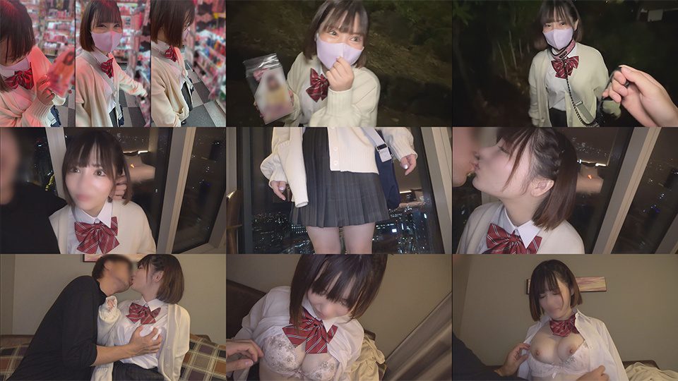 夜景バッチリの高層ホテルで制服のままハメ撮り開始♪