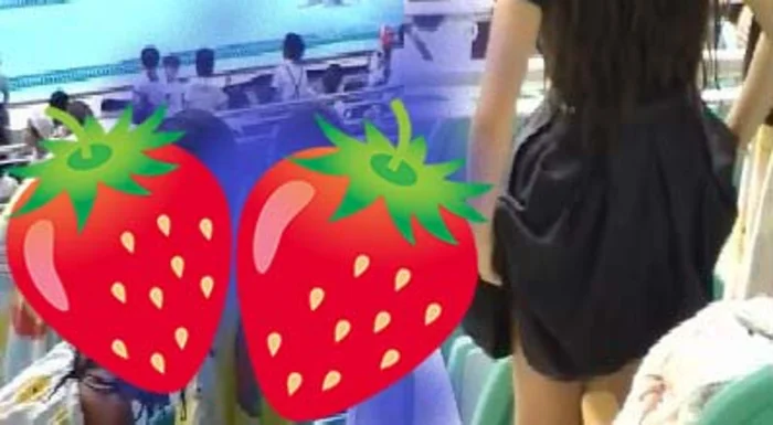 競泳競技観客席で着替える、●学生多数